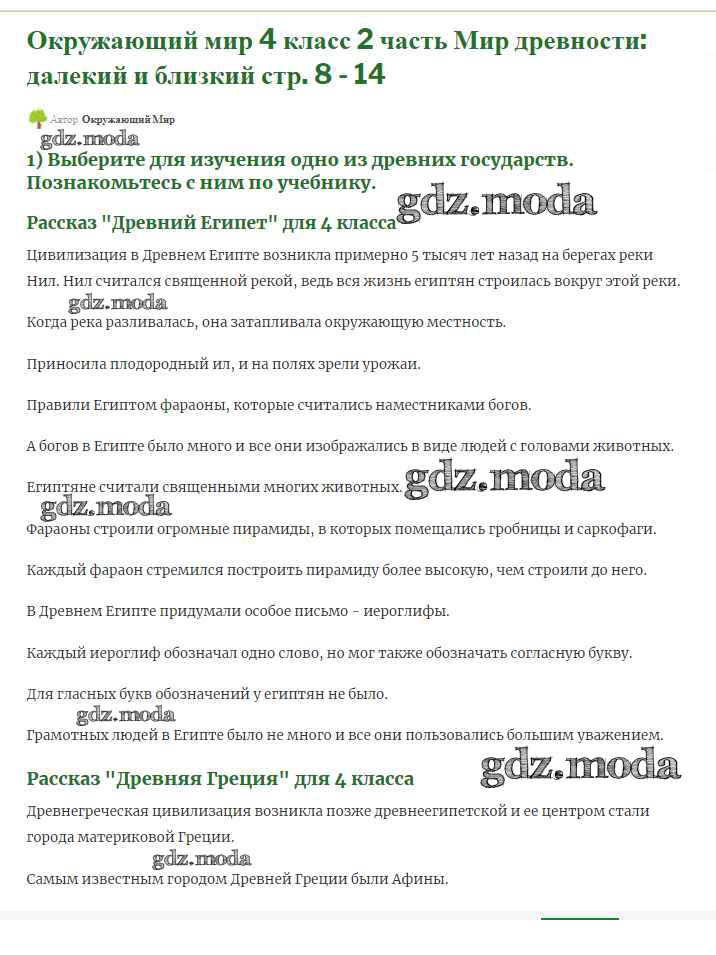 ОТВЕТ на задание № 8 Учебник по Окружающему миру 4 класс Плешаков Школа России