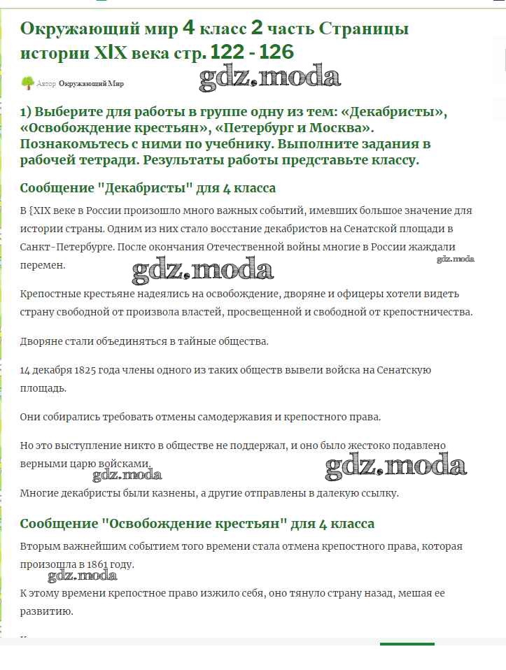 ОТВЕТ на задание № 122 Учебник по Окружающему миру 4 класс Плешаков Школа России