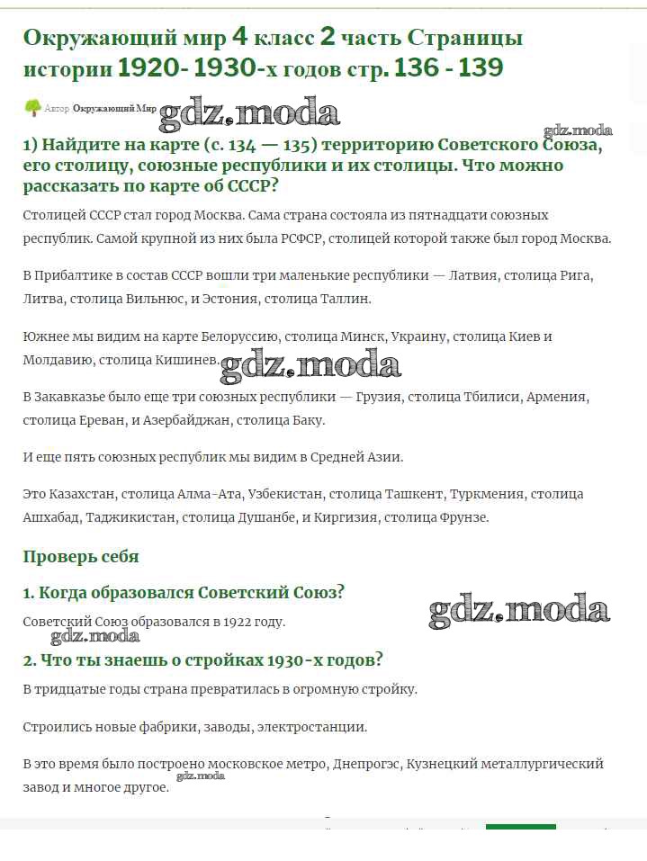 ГДЗ решение к заданию № 136 Окружающий мир 4 класс Плешаков (Школы России) Просвещение 2013 Часть 1, Часть 2 ФГОС бесплатно на гдз.мода!