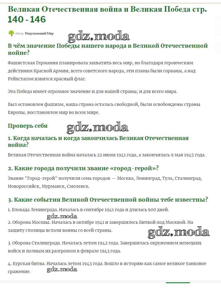 ОТВЕТ на задание № 140 Учебник по Окружающему миру 4 класс Плешаков Школа России