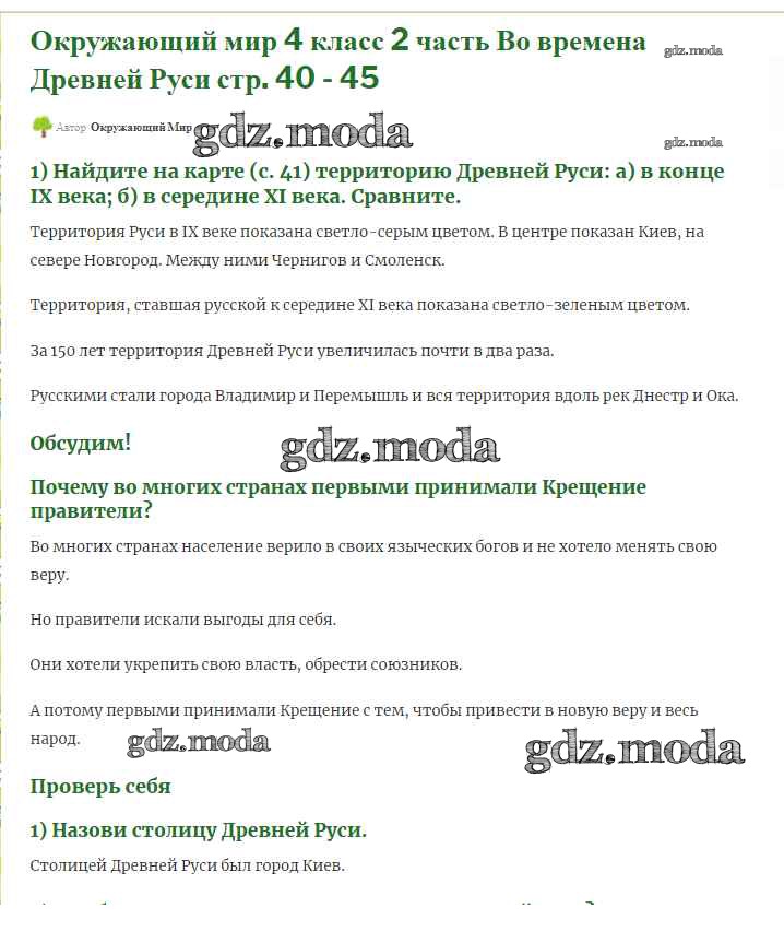 ГДЗ решение к заданию № 40 Окружающий мир 4 класс Плешаков (Школы России) Просвещение 2013 Часть 1, Часть 2 ФГОС бесплатно на гдз.мода!
