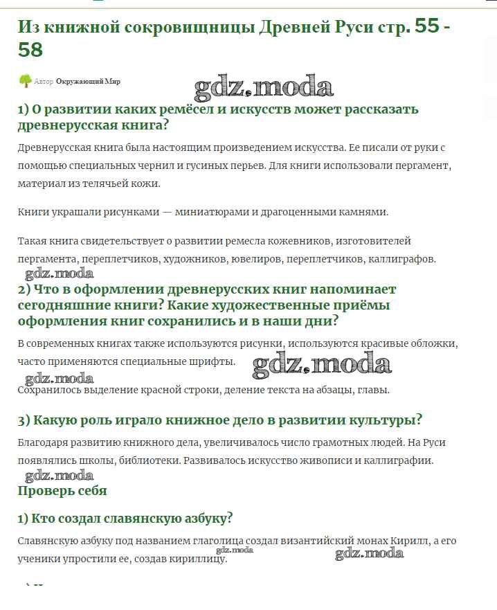 ГДЗ решение к заданию № 55 Окружающий мир 4 класс Плешаков (Школы России) Просвещение 2013 Часть 1, Часть 2 ФГОС бесплатно на гдз.мода!