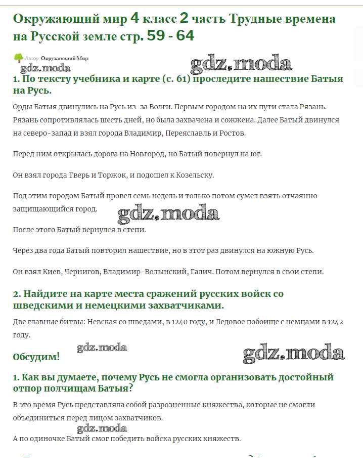 ГДЗ решение к заданию № 59 Окружающий мир 4 класс Плешаков (Школы России) Просвещение 2013 Часть 1, Часть 2 ФГОС бесплатно на гдз.мода!