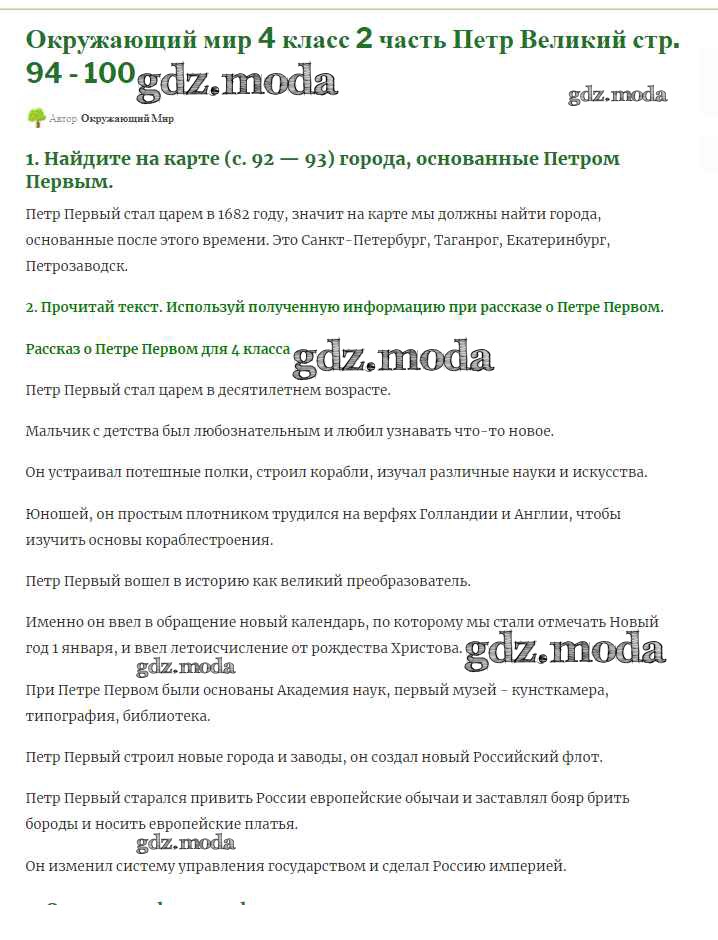 ОТВЕТ на задание № 94 Учебник по Окружающему миру 4 класс Плешаков Школа России