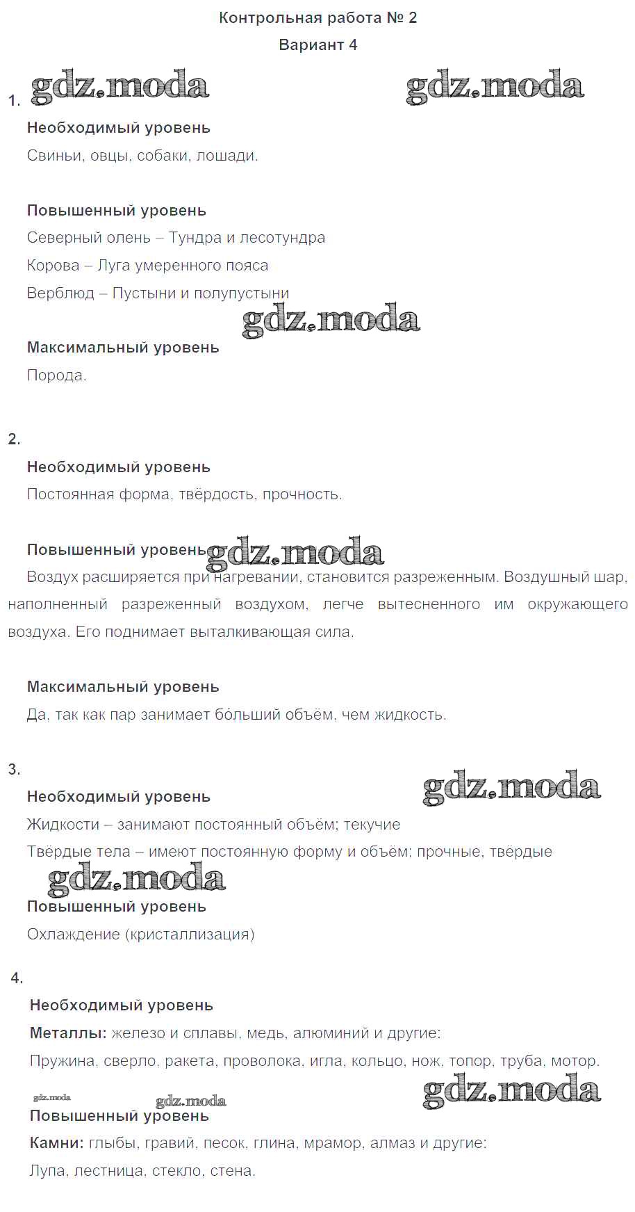ОТВЕТ на задание № 4 Проверочные и контрольные работы по Окружающему миру 4 класс Вахрушев Школа 2100