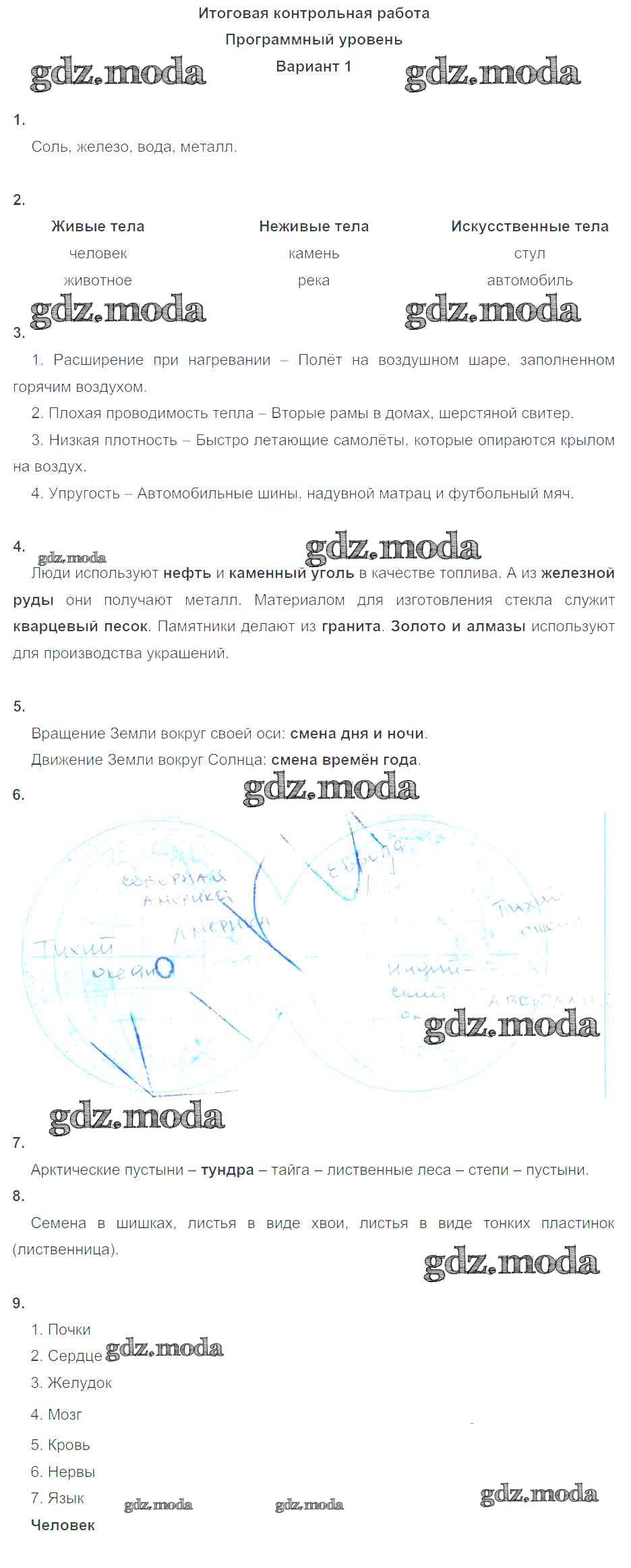 ОТВЕТ на задание № 1 Проверочные и контрольные работы по Окружающему миру 4 класс Вахрушев Школа 2100