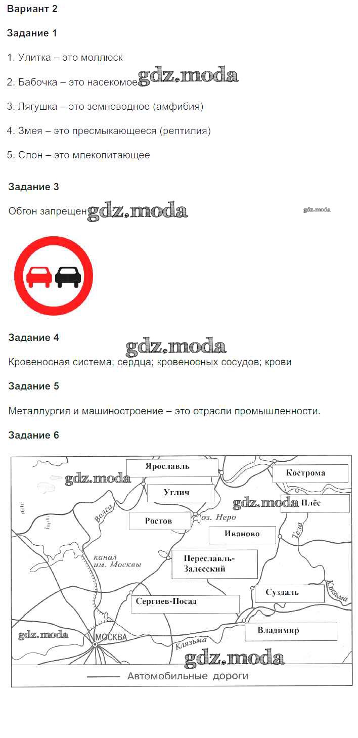 ОТВЕТ на задание № 2 Проверочные работы по Окружающему миру 4 класс Плешаков Школа России