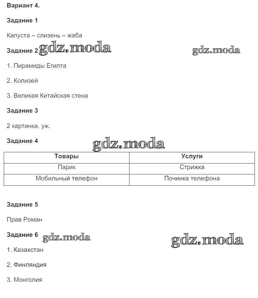 ОТВЕТ на задание № 4 Проверочные работы по Окружающему миру 4 класс Плешаков Школа России