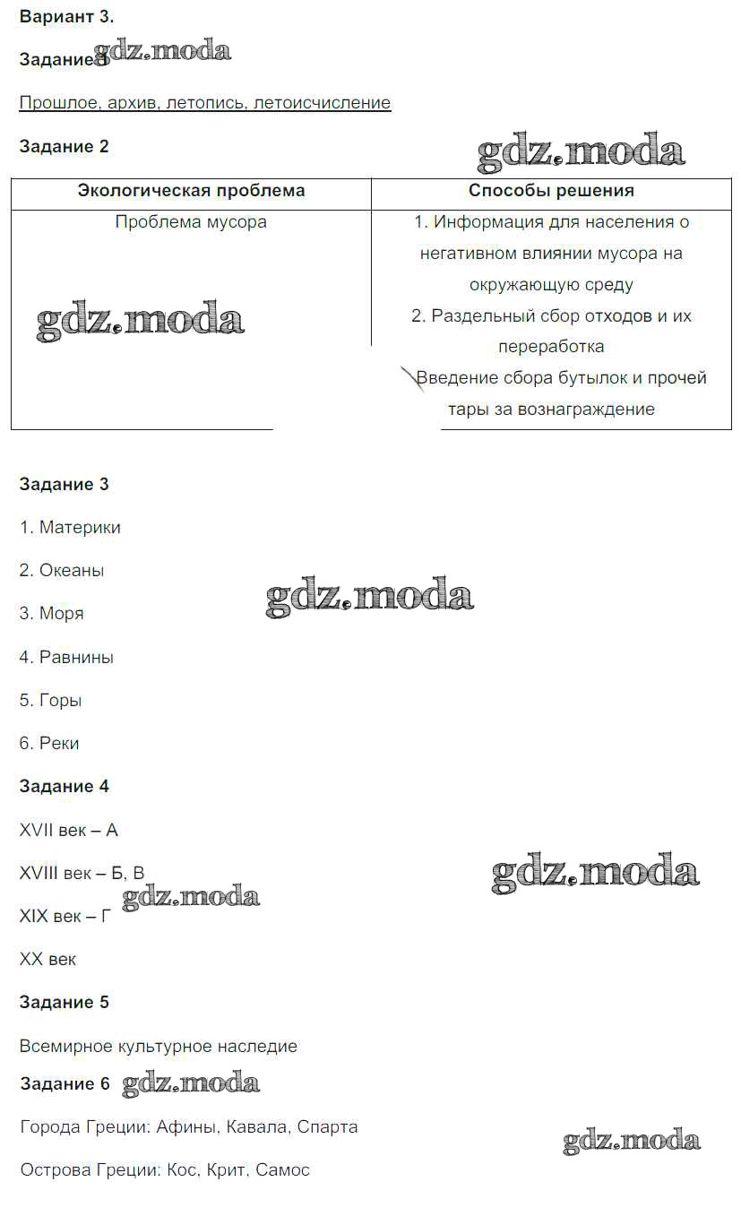 ГДЗ решение к заданию № 3 Окружающий мир 4 класс проверочные работы Плешаков А.А. Просвещение 2018 ФГОС бесплатно на гдз.мода!
