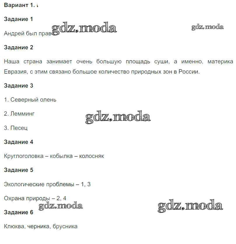 ГДЗ решение к заданию № 1 Окружающий мир 4 класс проверочные работы Плешаков А.А. Просвещение 2018 ФГОС бесплатно на гдз.мода!