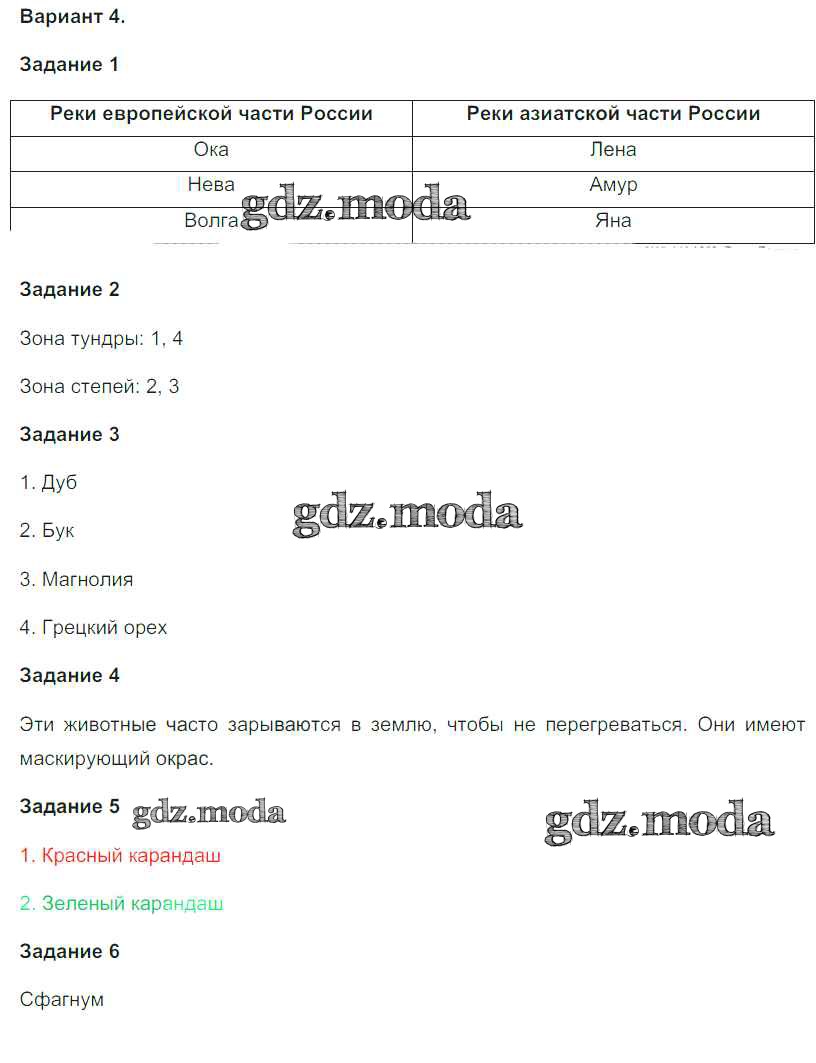 ГДЗ решение к заданию № 4 Окружающий мир 4 класс проверочные работы Плешаков А.А. Просвещение 2018 ФГОС бесплатно на гдз.мода!