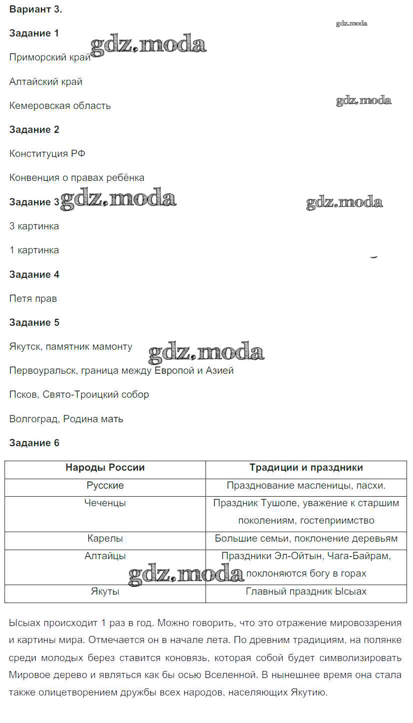 ГДЗ решение к заданию № 3 Окружающий мир 4 класс проверочные работы Плешаков А.А. Просвещение 2018 ФГОС бесплатно на гдз.мода!