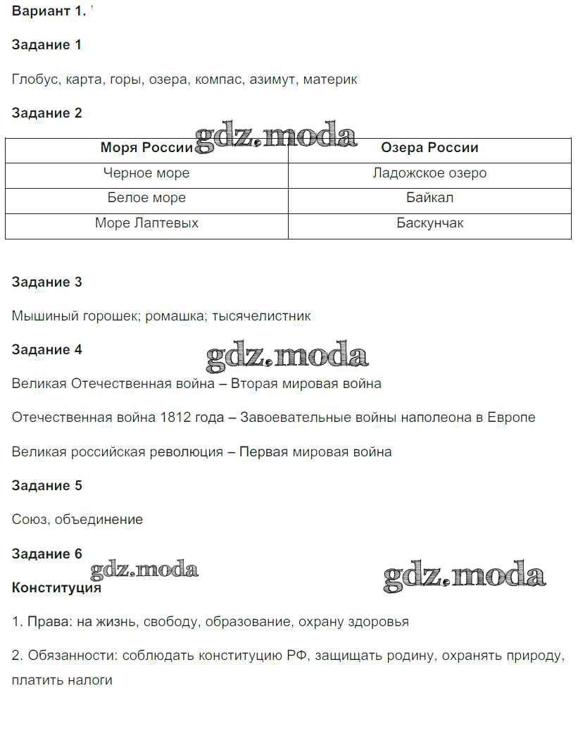 ОТВЕТ на задание № 1 Проверочные работы по Окружающему миру 4 класс Плешаков Школа России