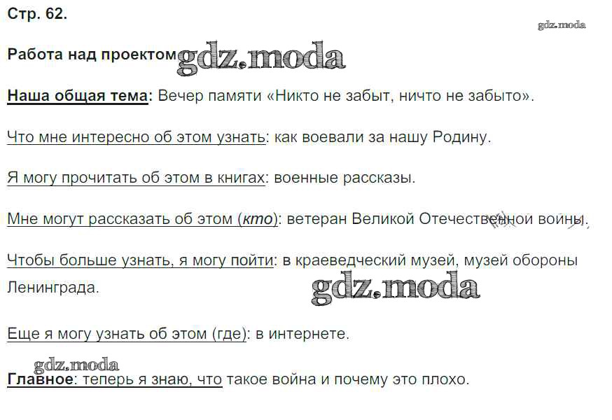 ОТВЕТ на задание № 62 Рабочая тетрадь по Окружающему миру 4 класс Ивченкова Планета знаний