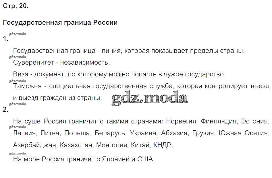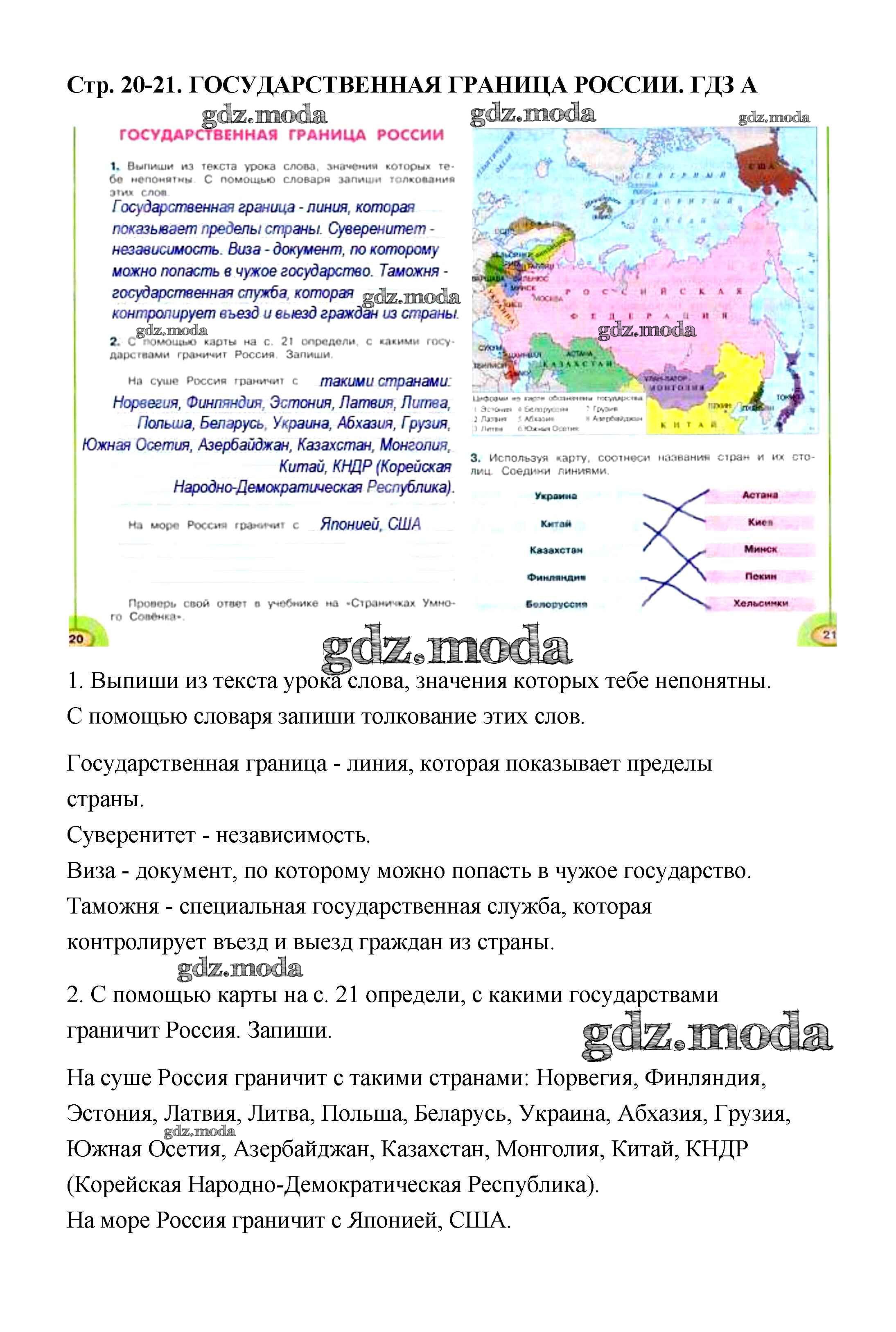 ГДЗ решение к заданию № 20 Окружающий мир 4 класс рабочая тетрадь Плешаков А.А. Просвещение 2015 Часть 1, Часть 2 ФГОС бесплатно на гдз.мода!