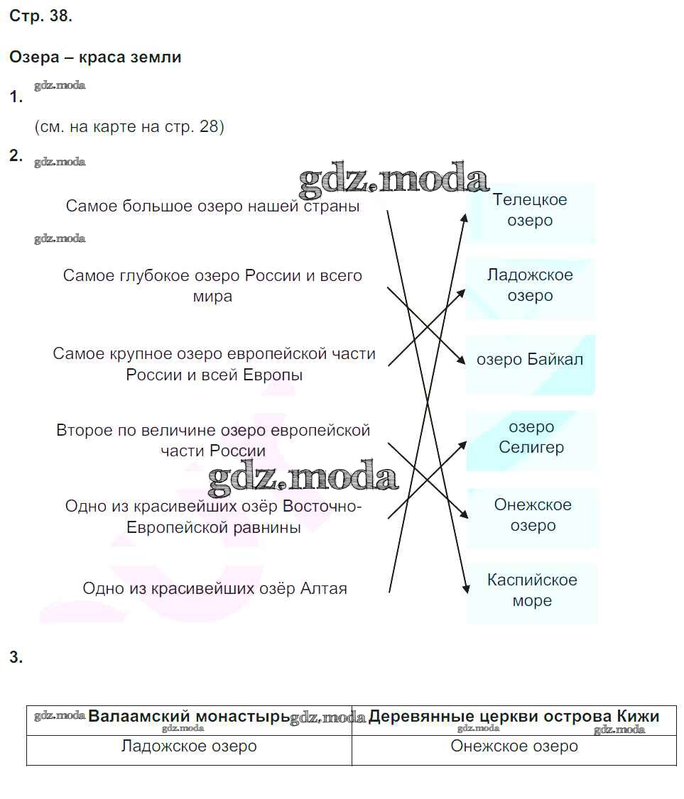 ГДЗ решение к заданию № 38 Окружающий мир 4 класс рабочая тетрадь Плешаков А.А. Просвещение 2015 Часть 1, Часть 2 ФГОС бесплатно на гдз.мода!