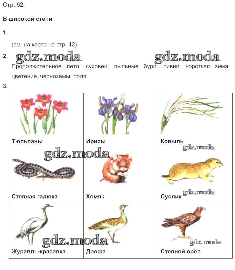 ГДЗ решение к заданию № 52 Окружающий мир 4 класс рабочая тетрадь Плешаков А.А. Просвещение 2015 Часть 1, Часть 2 ФГОС бесплатно на гдз.мода!