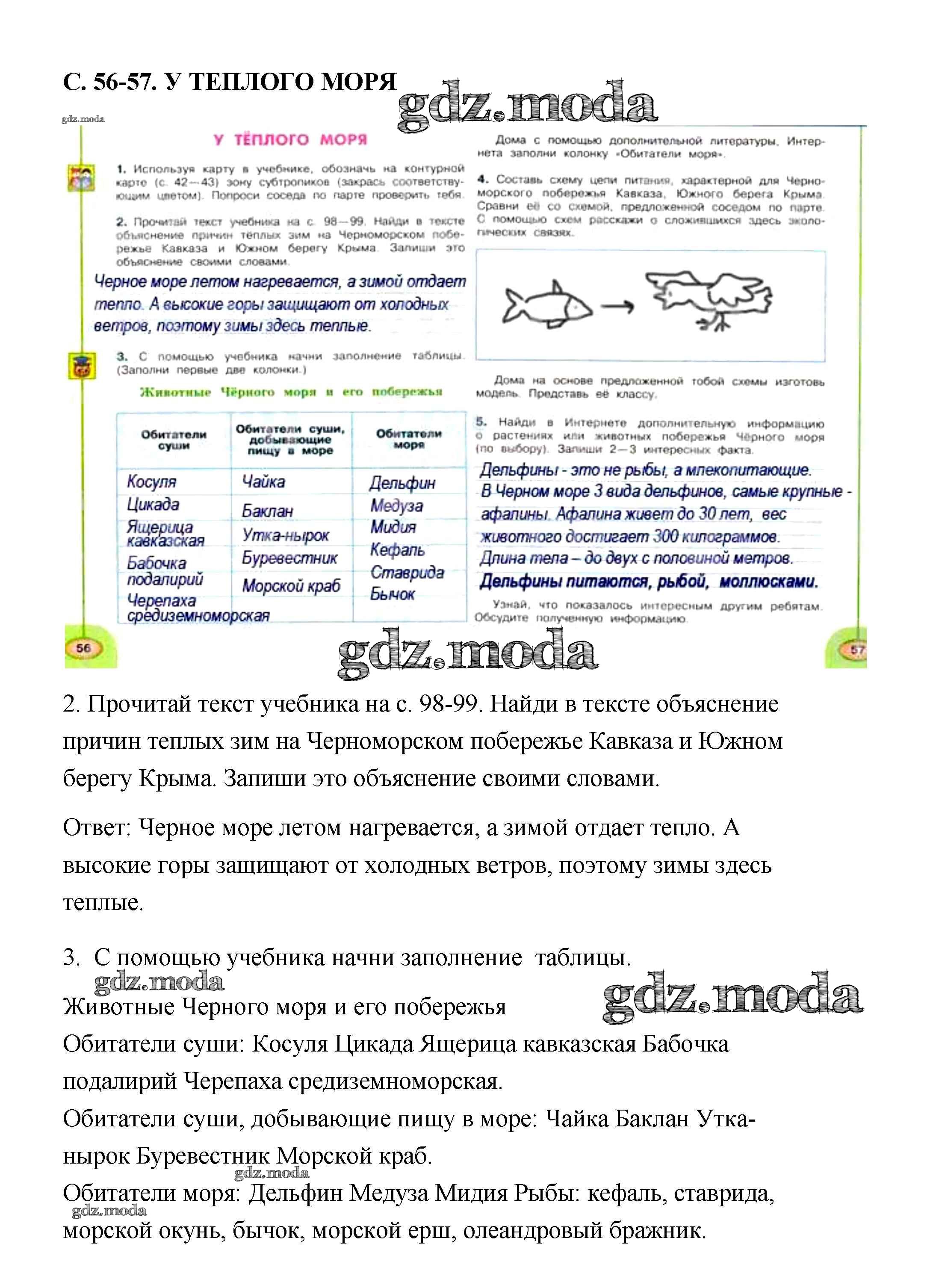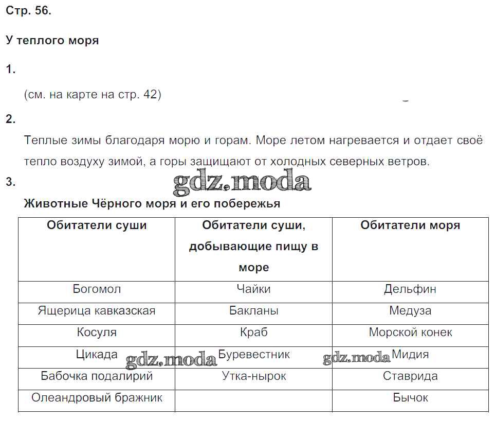 ГДЗ решение к заданию № 56 Окружающий мир 4 класс рабочая тетрадь Плешаков А.А. Просвещение 2015 Часть 1, Часть 2 ФГОС бесплатно на гдз.мода!