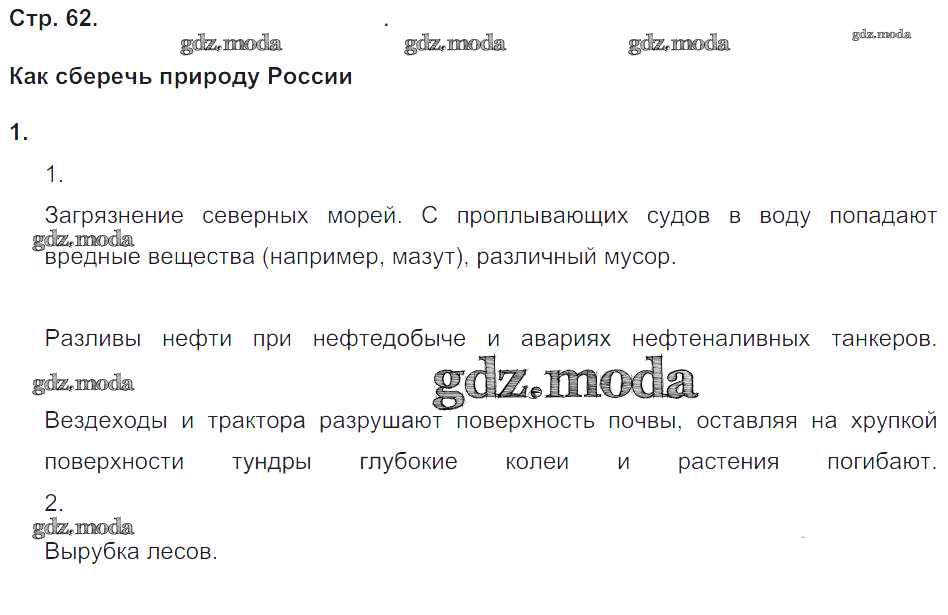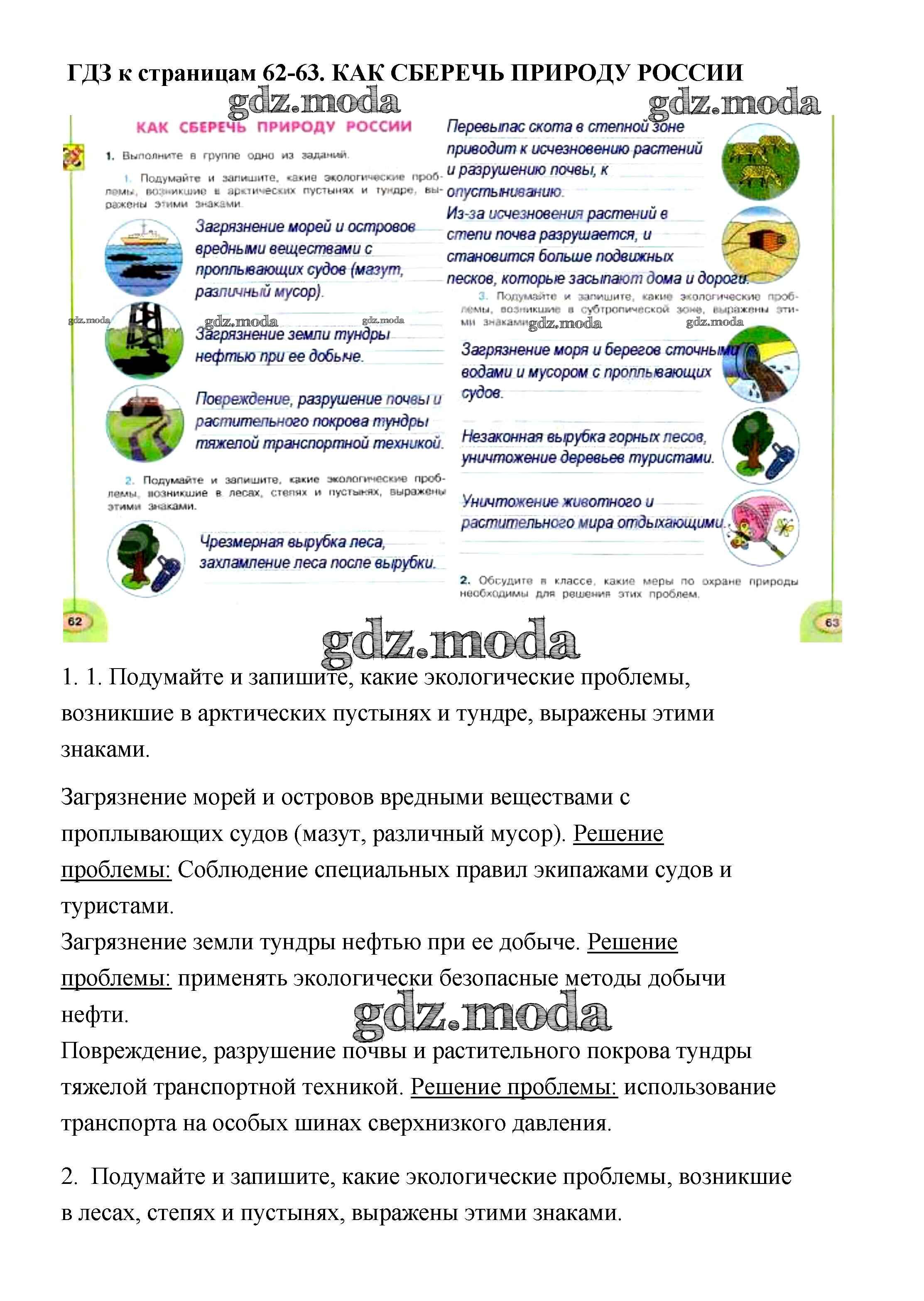 ГДЗ решение к заданию № 62 Окружающий мир 4 класс рабочая тетрадь Плешаков А.А. Просвещение 2015 Часть 1, Часть 2 ФГОС бесплатно на гдз.мода!
