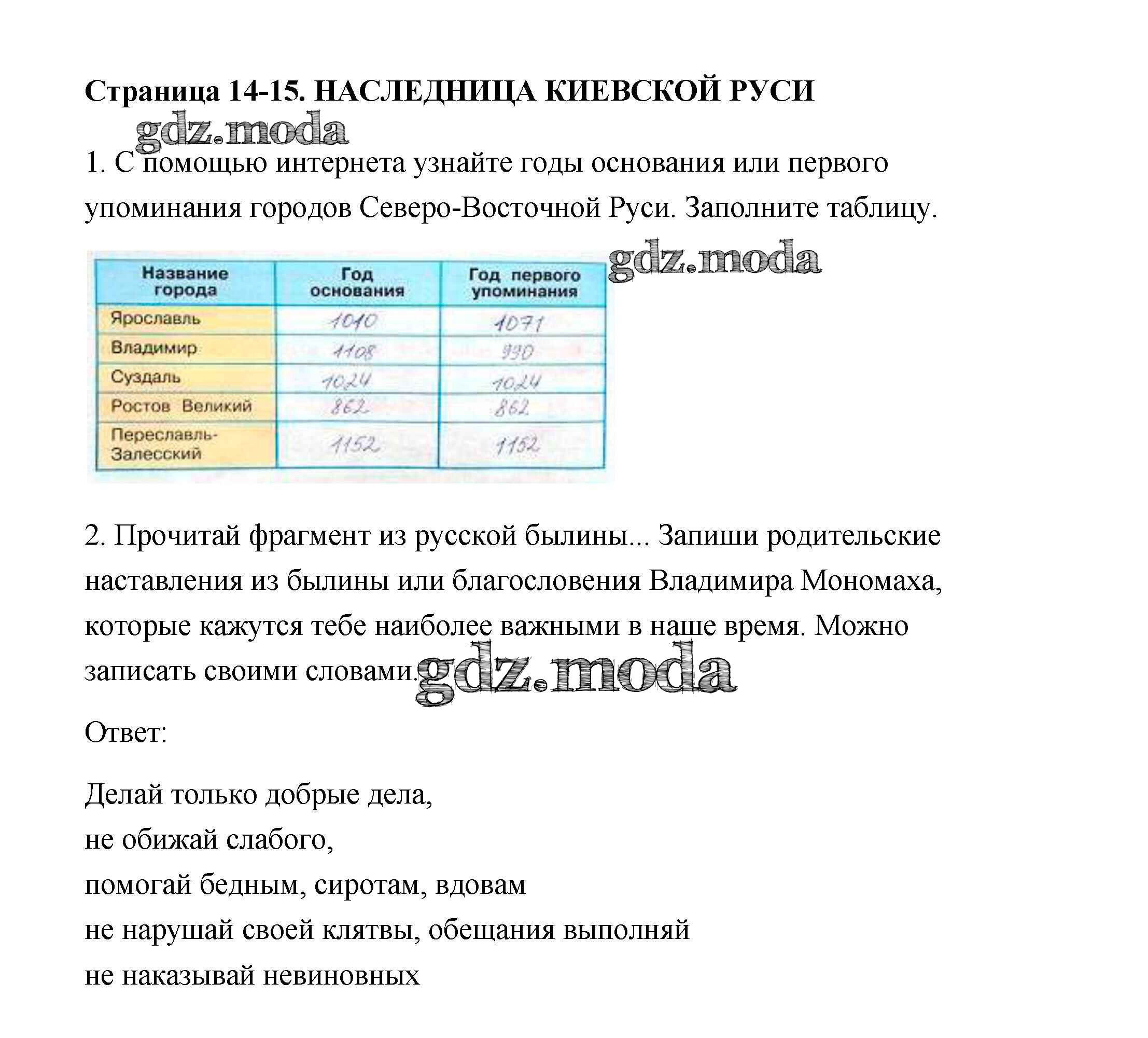 ГДЗ решение к заданию № 14 Окружающий мир 4 класс рабочая тетрадь Плешаков А.А. Просвещение 2015 Часть 1, Часть 2 ФГОС бесплатно на гдз.мода!