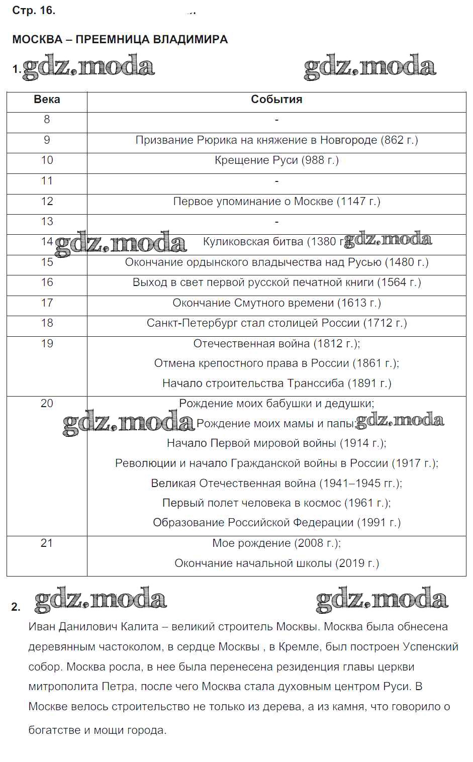 ГДЗ решение к заданию № 16 Окружающий мир 4 класс рабочая тетрадь Плешаков А.А. Просвещение 2015 Часть 1, Часть 2 ФГОС бесплатно на гдз.мода!
