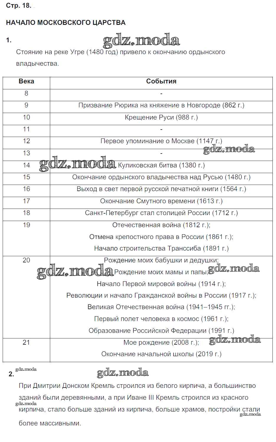 ГДЗ решение к заданию № 18 Окружающий мир 4 класс рабочая тетрадь Плешаков А.А. Просвещение 2015 Часть 1, Часть 2 ФГОС бесплатно на гдз.мода!