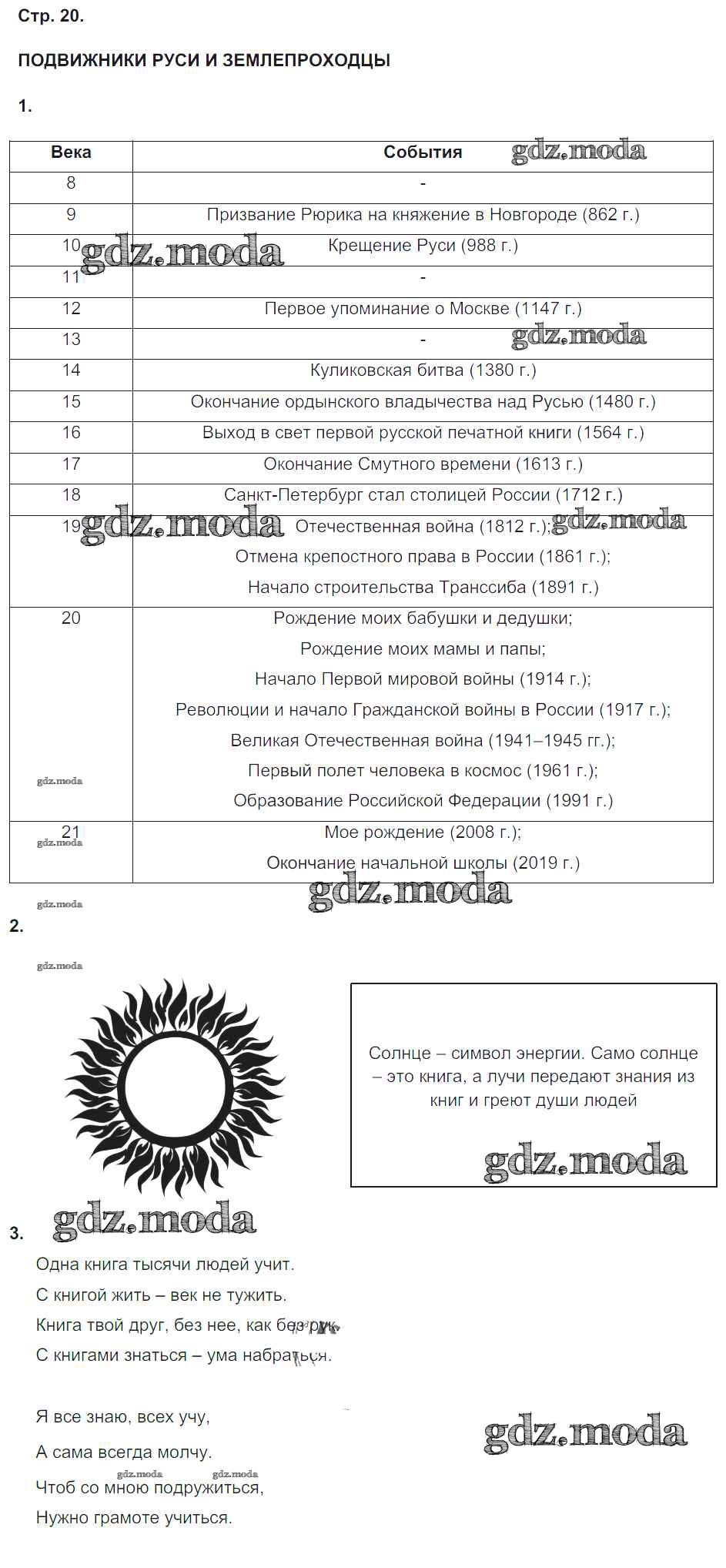ГДЗ решение к заданию № 20 Окружающий мир 4 класс рабочая тетрадь Плешаков А.А. Просвещение 2015 Часть 1, Часть 2 ФГОС бесплатно на гдз.мода!