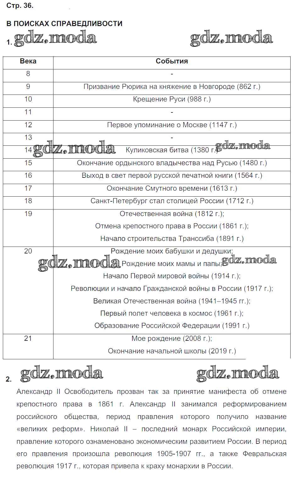 ГДЗ решение к заданию № 36 Окружающий мир 4 класс рабочая тетрадь Плешаков А.А. Просвещение 2015 Часть 1, Часть 2 ФГОС бесплатно на гдз.мода!