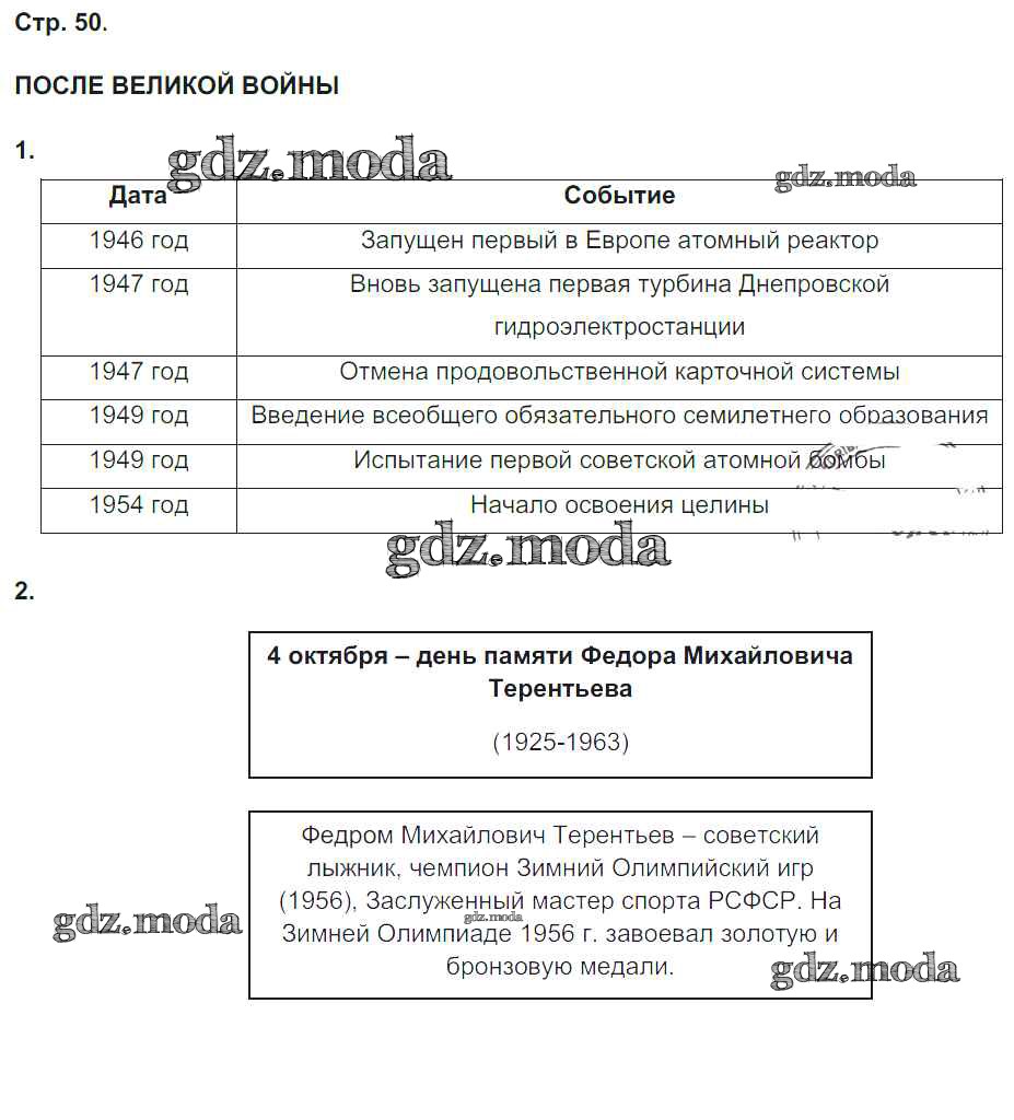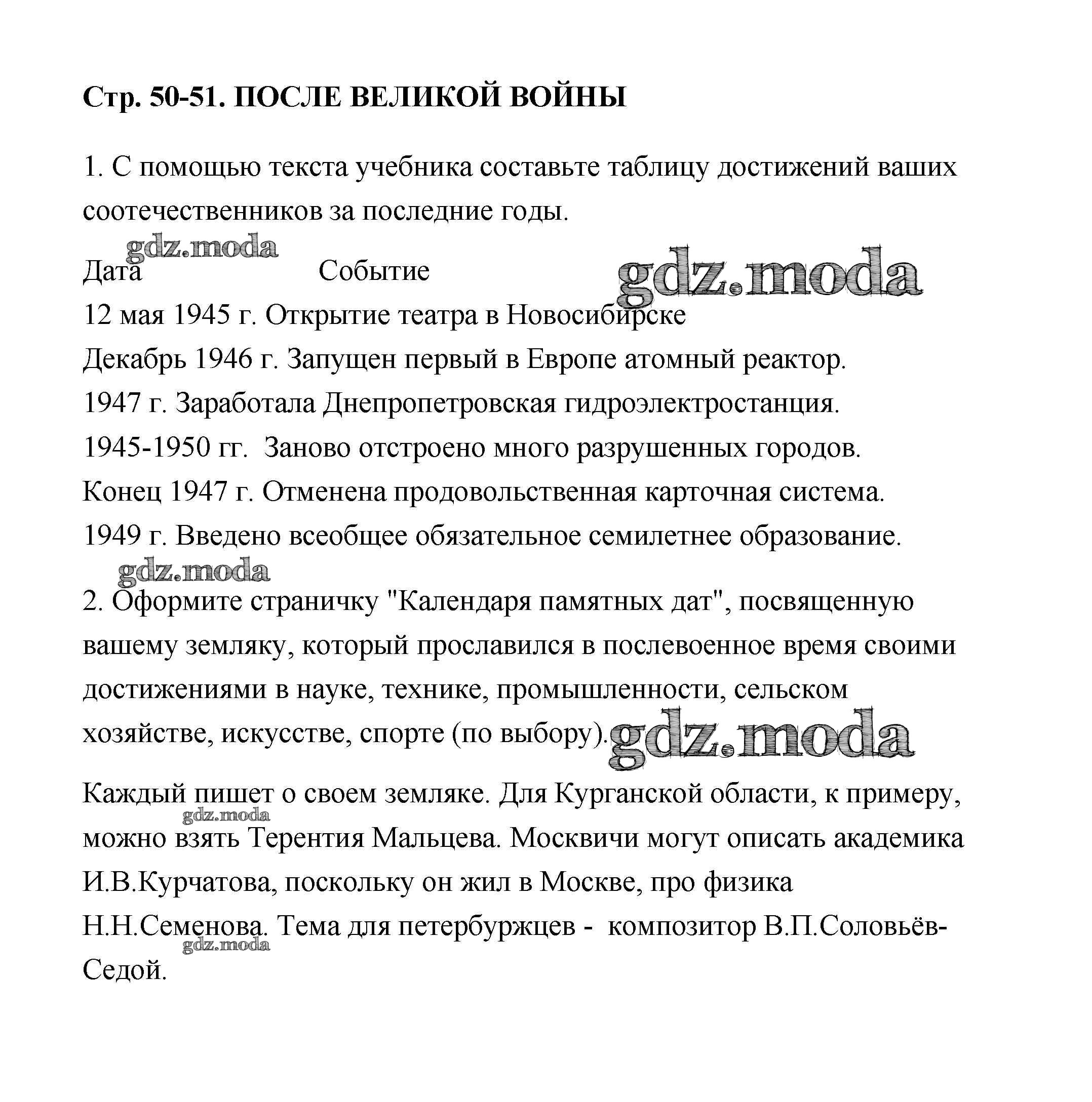 ГДЗ решение к заданию № 50 Окружающий мир 4 класс рабочая тетрадь Плешаков А.А. Просвещение 2015 Часть 1, Часть 2 ФГОС бесплатно на гдз.мода!