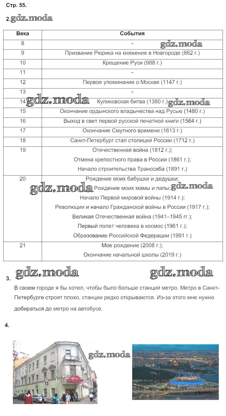 ГДЗ решение к заданию № 55 Окружающий мир 4 класс рабочая тетрадь Плешаков А.А. Просвещение 2015 Часть 1, Часть 2 ФГОС бесплатно на гдз.мода!