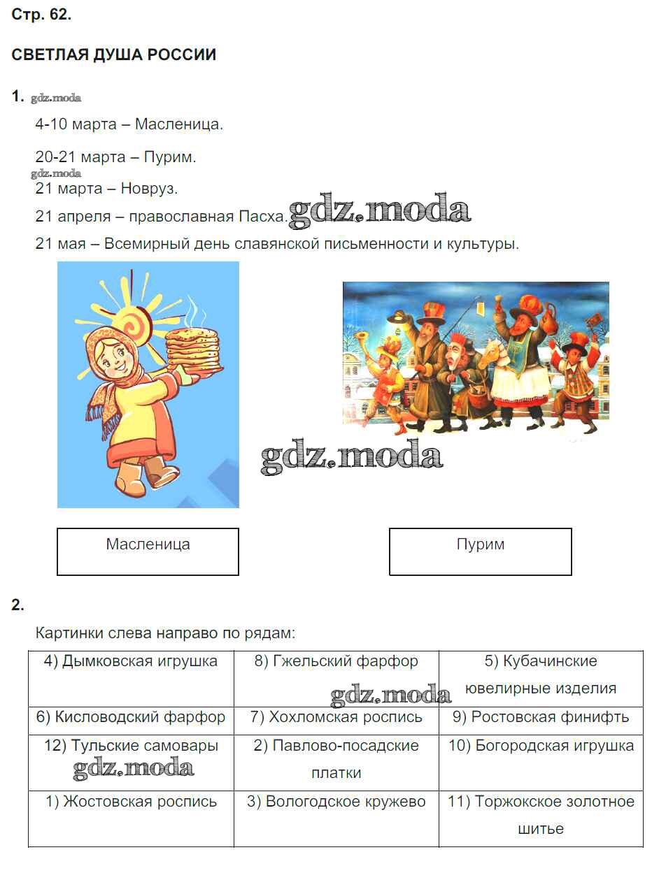 ГДЗ решение к заданию № 62 Окружающий мир 4 класс рабочая тетрадь Плешаков А.А. Просвещение 2015 Часть 1, Часть 2 ФГОС бесплатно на гдз.мода!