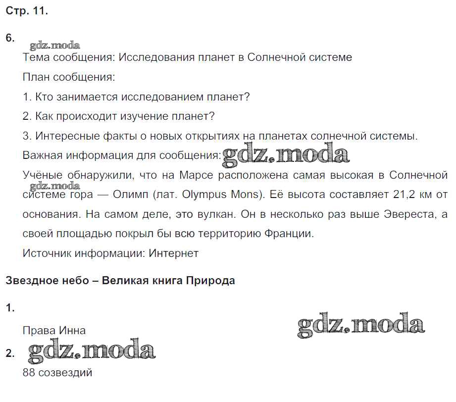 ОТВЕТ на задание № 11 Рабочая тетрадь по Окружающему миру 4 класс Плешаков Школа России