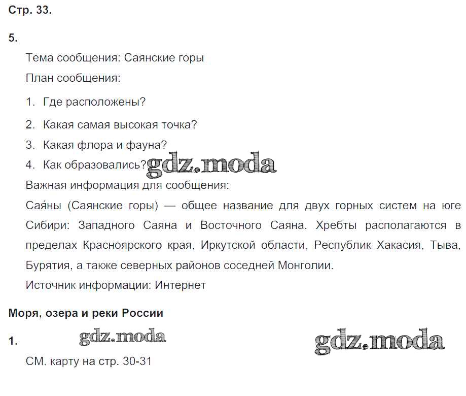 ОТВЕТ на задание № 33 Рабочая тетрадь по Окружающему миру 4 класс Плешаков Школа России