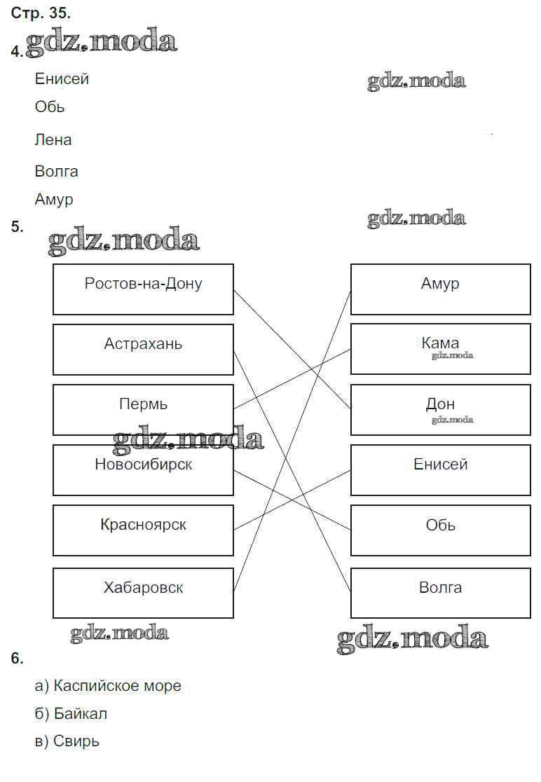 ГДЗ решение к заданию № 35 Окружающий мир 4 класс рабочая тетрадь Плешаков А.А. Просвещение 2014 Часть 1, Часть 2 ФГОС бесплатно на гдз.мода!