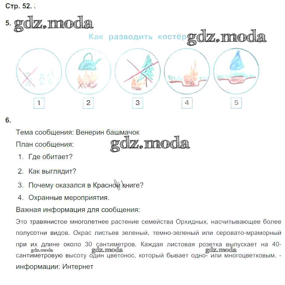 ГДЗ решение к заданию № 52 Окружающий мир 4 класс рабочая тетрадь Плешаков А.А. Просвещение 2014 Часть 1, Часть 2 ФГОС бесплатно на гдз.мода!
