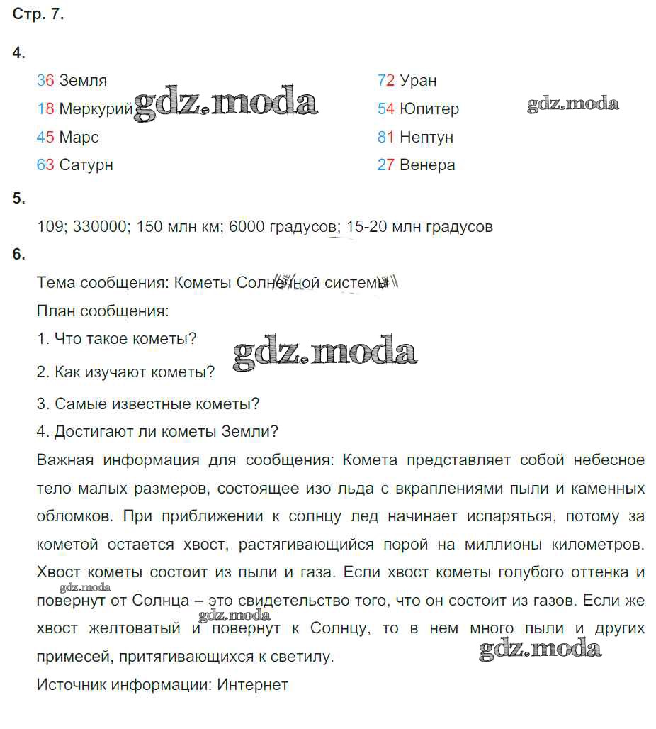 ОТВЕТ на задание № 7 Рабочая тетрадь по Окружающему миру 4 класс Плешаков Школа России