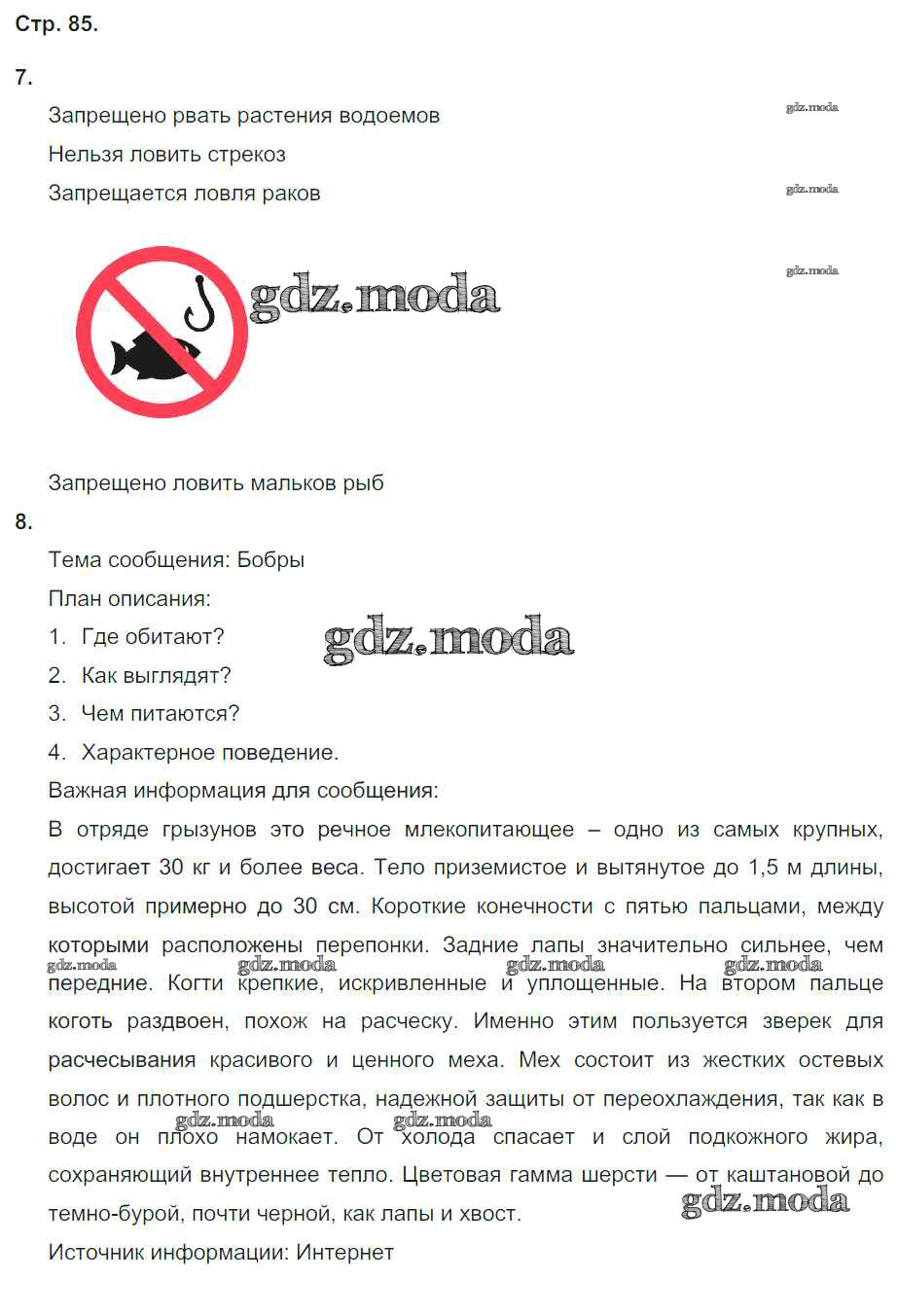 ГДЗ решение к заданию № 85 Окружающий мир 4 класс рабочая тетрадь Плешаков А.А. Просвещение 2014 Часть 1, Часть 2 ФГОС бесплатно на гдз.мода!