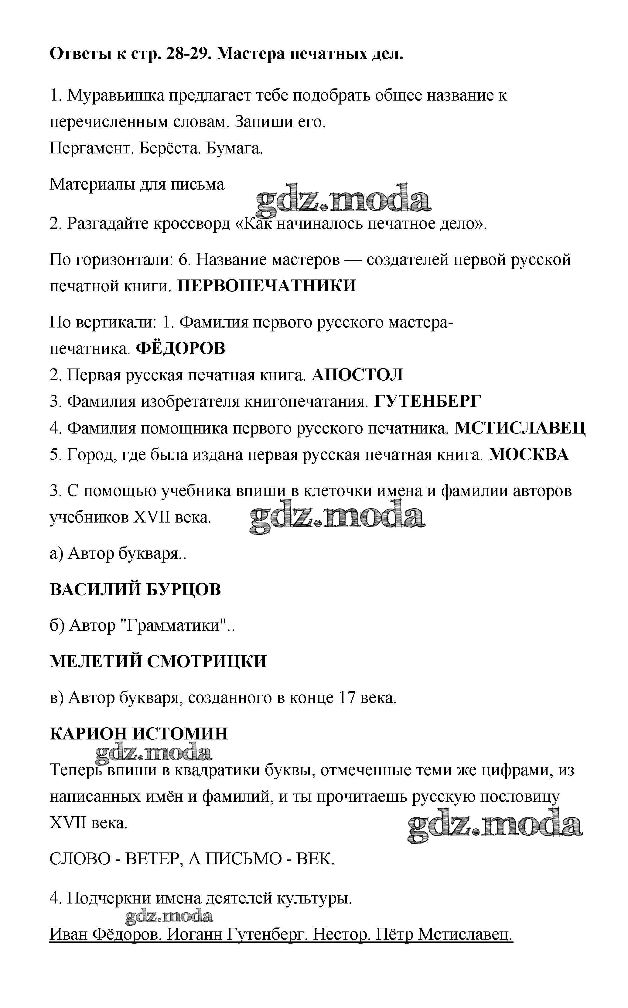 ОТВЕТ на задание № 28 Рабочая тетрадь по Окружающему миру 4 класс Плешаков Школа России