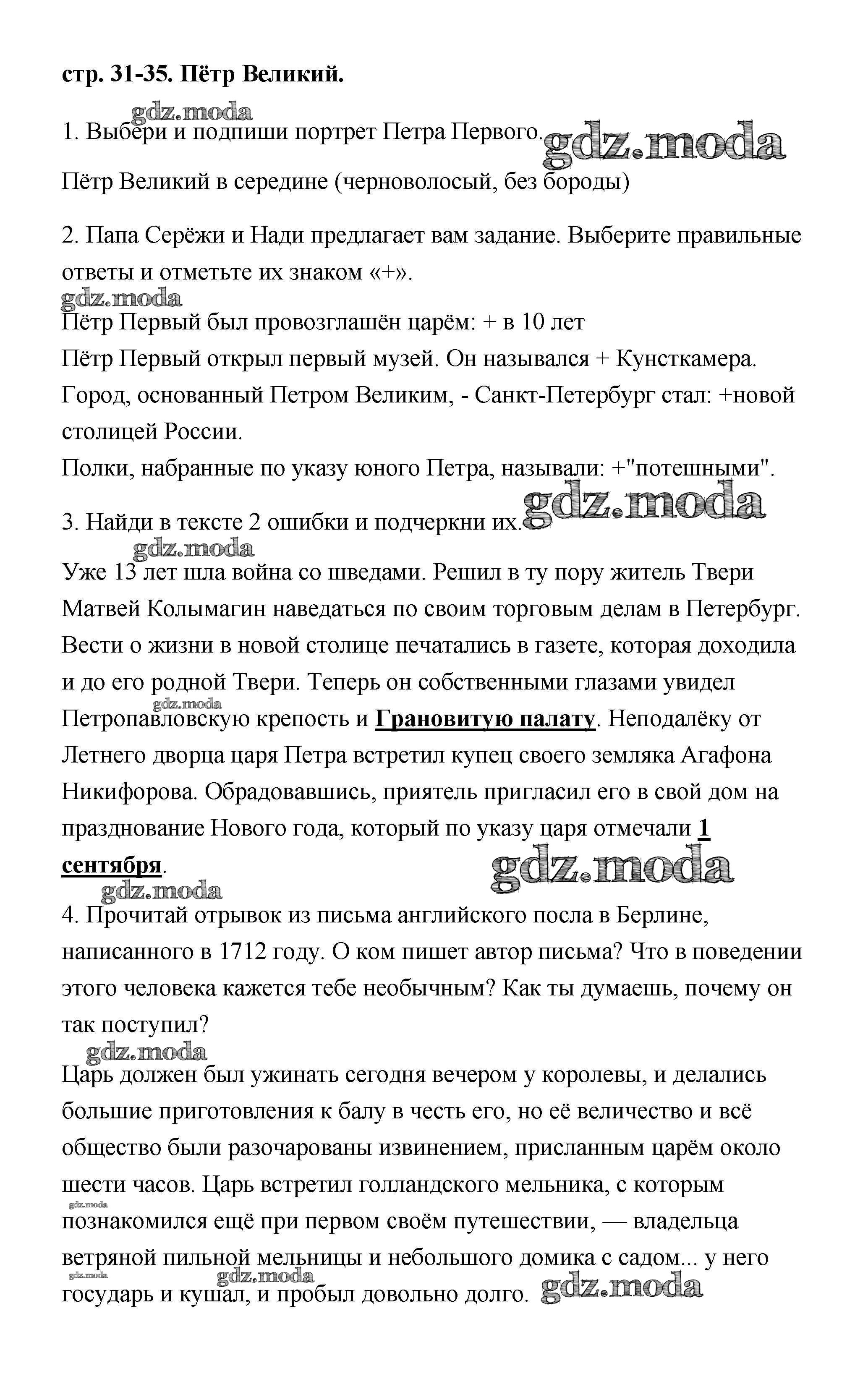 ОТВЕТ на задание № 31 Рабочая тетрадь по Окружающему миру 4 класс Плешаков Школа России