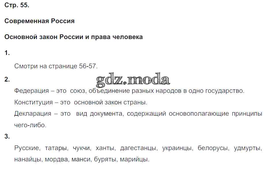 ОТВЕТ на задание № 55 Рабочая тетрадь по Окружающему миру 4 класс Плешаков Школа России