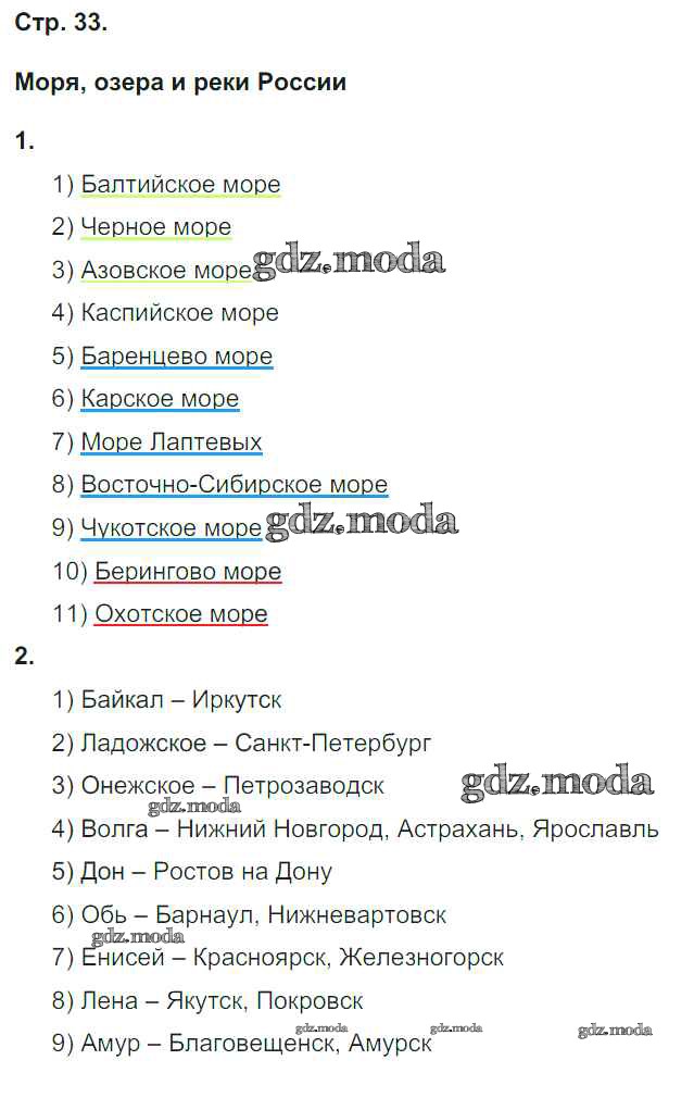 ГДЗ решение к заданию № 33 Окружающий мир 4 класс рабочая тетрадь Соколова Н.А. (к уч. Плешакова А.А.) Экзамен 2020 Часть 1, Часть 2 ФГОС бесплатно на гдз.мода!