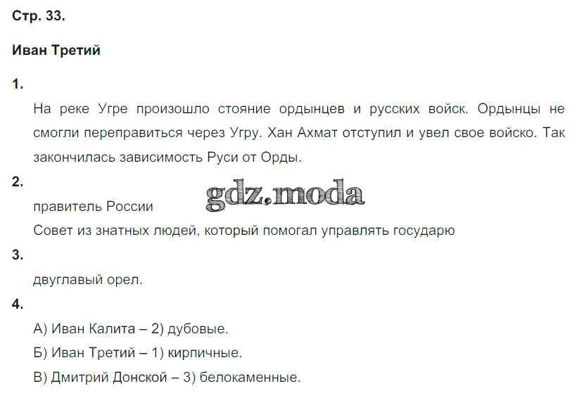 ГДЗ решение к заданию № 33 Окружающий мир 4 класс рабочая тетрадь Соколова Н.А. (к уч. Плешакова А.А.) Экзамен 2020 Часть 1, Часть 2 ФГОС бесплатно на гдз.мода!