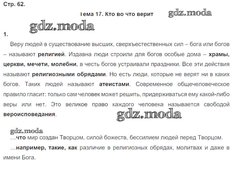 ГДЗ решение к заданию № 62 Окружающий мир 4 класс рабочая тетрадь Вахрушев А.А. Баласс 2016 Часть 1, Часть 2 ФГОС бесплатно на гдз.мода!