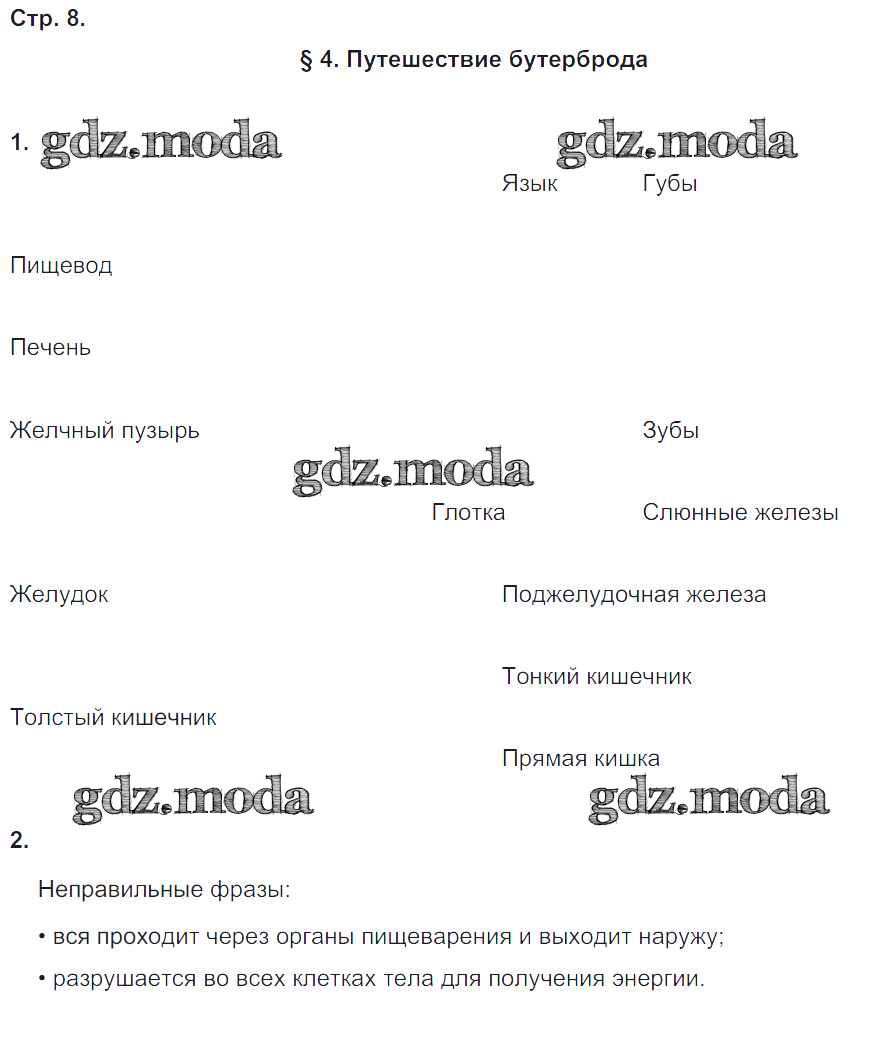 ГДЗ решение к заданию № 8 Окружающий мир 4 класс рабочая тетрадь Вахрушев А.А. Баласс 2016 Часть 1, Часть 2 ФГОС бесплатно на гдз.мода!