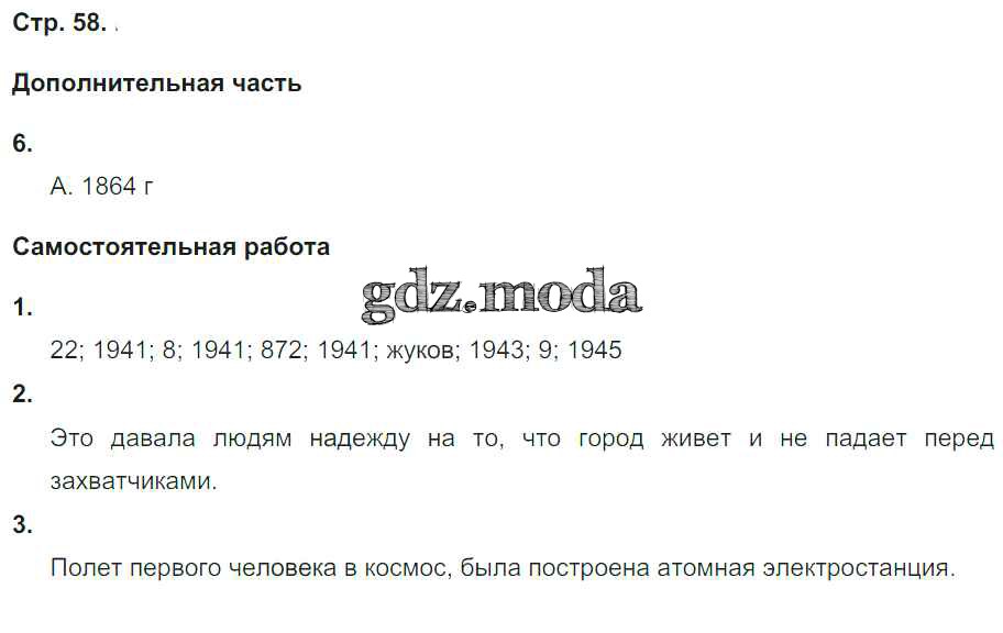 ГДЗ решение к заданию № 58 Окружающий мир 4 класс тесты и самостоятельные работы Потапов И.В. Аст/Астрель 2020 ФГОС бесплатно на гдз.мода!