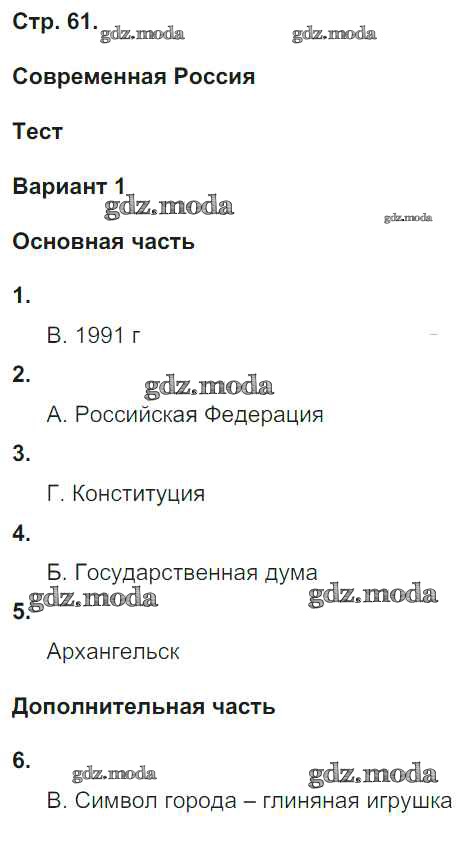 ГДЗ решение к заданию № 61 Окружающий мир 4 класс тесты и самостоятельные работы Потапов И.В. Аст/Астрель 2020 ФГОС бесплатно на гдз.мода!