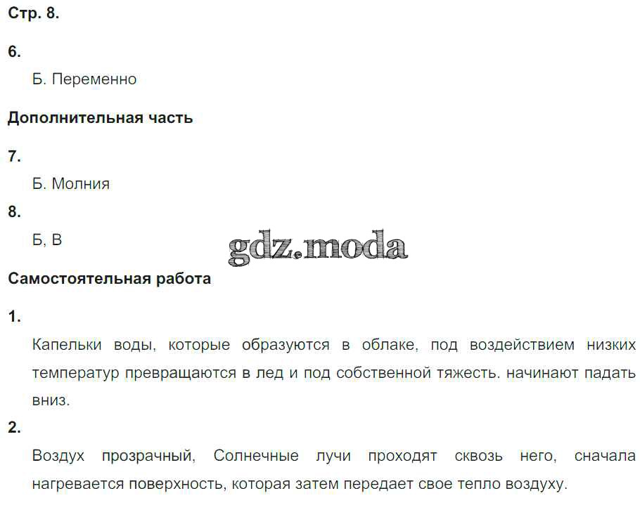 ГДЗ решение к заданию № 8 Окружающий мир 4 класс тесты и самостоятельные работы Потапов И.В. Аст/Астрель 2020 ФГОС бесплатно на гдз.мода!