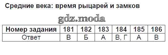 ГДЗ решение к заданию № №181-186 Окружающий мир 4 класс тесты Плешаков А.А. Просвещение 2014 ФГОС бесплатно на гдз.мода!
