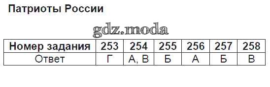 ГДЗ решение к заданию № №253-258 Окружающий мир 4 класс тесты Плешаков А.А. Просвещение 2014 ФГОС бесплатно на гдз.мода!