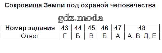 ГДЗ решение к заданию № №43-48 Окружающий мир 4 класс тесты Плешаков А.А. Просвещение 2014 ФГОС бесплатно на гдз.мода!
